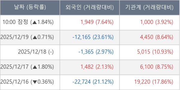 ※ 사모펀드 등 일부 기관의 순매매량은 표시되지 않음