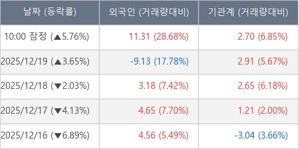 [표] 외국인ㆍ기관 순매매량 (단위 만주)