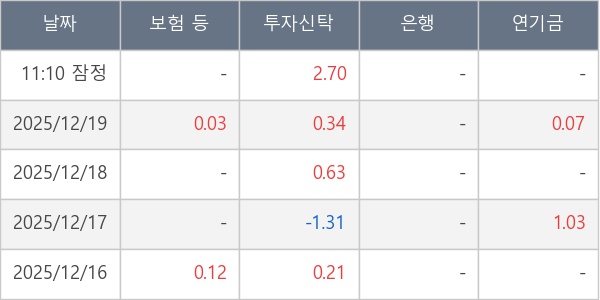 ※ 사모펀드 등 일부 기관의 순매매량은 표시되지 않음