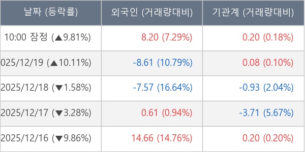 [표] 외국인ㆍ기관 순매매량 (단위 만주)