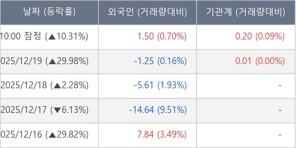 [장중수급포착] 나노팀, 외국인/기관 동시 순매수… 주가 +10.31%