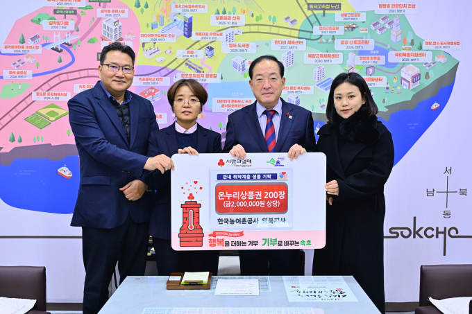 기탁된 온누리상품권은 속초시를 통해 저소득 가구 등 복지 사각지대에 놓인 취약계층에게 전달될 예정으로, 겨울철 생필품·식료품 구입 등에 활용돼 실질적인 도움을 줄 것으로 기대된다. 한국농어촌공사 영북지사는 평소에도 명절·혹한기 등을 중심으로 지역사회 나눔 활동을 이어오고 있다.