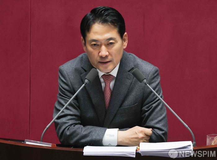 [서울=뉴스핌] 윤창빈 기자 = 장동혁 국민의힘 대표가 23일 서울 여의도 국회에서 열린 본회의에서 12·3 윤석열 비상계엄 등에 대한 전담재판부 설치 및 제보자 보호 등에 관한 특별법안(대안)에 대한 무제한 토론(필리버스터)을 하고 있다. 2025.12.23 pangbin@newspim.com