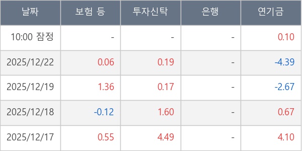 [표] 주요 기관별 순매매량 (단위 만주)
