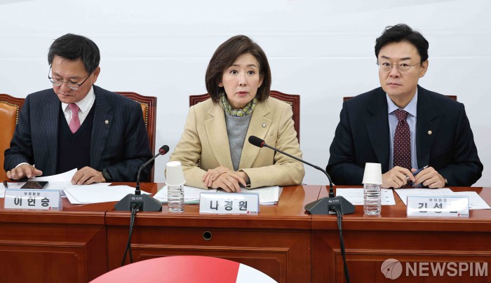 [서울=뉴스핌] 윤창빈 기자 = 나경원 국민의힘 지방선거총괄기획단 위원장이 23일 서울 여의도 국회에서 열린 지방선거총괄기획단 전체회의에서 발언하고 있다. 2025.12.23 pangbin@newspim.com