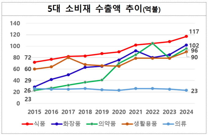[세종=뉴스핌] 최영수 선임기자 = 최근 한류가 확산되면서 K-푸드와 K-뷰티가 인기를 끌고 있는 가운데, 소비재 수출이 크게 늘고 있다.