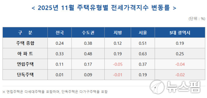 2025년 11월 주택유형별 전세가격지수 변동률 [자료=AI 제작]