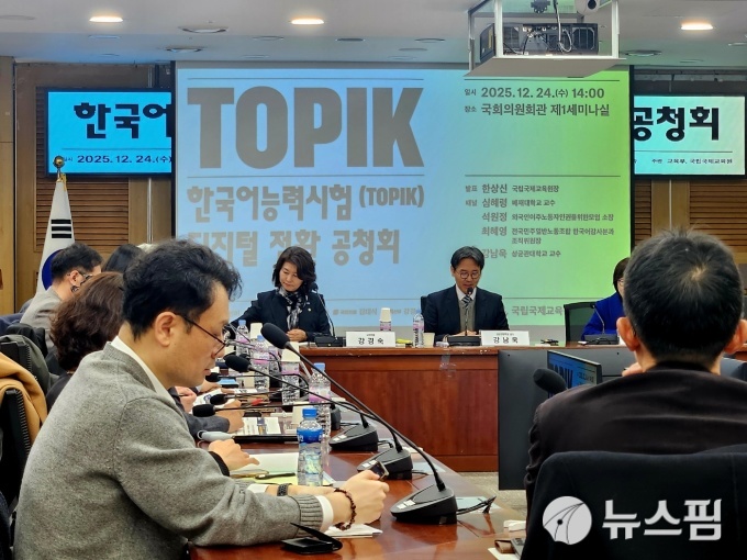 [서울=뉴스핌] 황혜영 인턴기자 = 교육부와 국립국제교육원이 24일 국회의원회관 제1세미나실에서 여·야 의원실 공동 주최로 한국어능력시험(TOPIK) 디지털 전환 공청회를 열었다. 2025.12.24 hyeng0@newspim.com