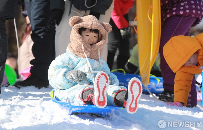 [서울=뉴스핌] 이형석 기자 = 크리스마스를 맞이한 25일 오후 서울 노원 씽씽눈썰매장에서 아이들이 눈썰매를 타고 있다. 2025.12.25 leehs@newspim.com