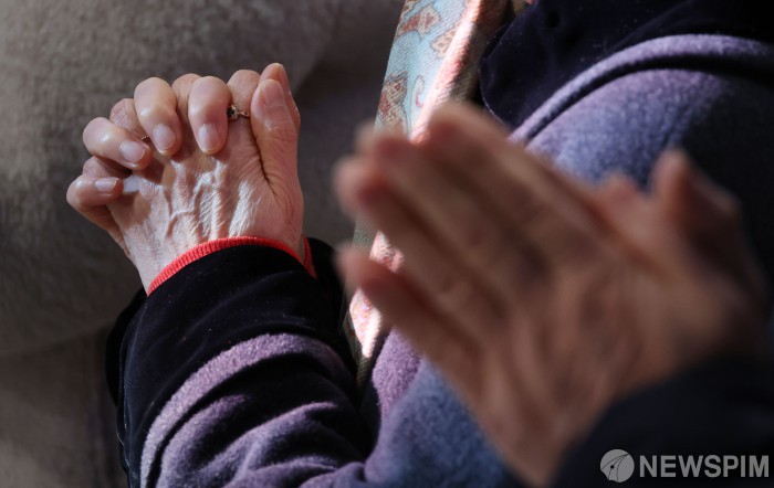 [서울=뉴스핌] 사진공동취재단 = 성탄절인 25일 서울 중구 명동대성당에서 열린 성탄 대축일 낮 미사에서 신도들이 기도 하고 있다. 2025.12.25 photo@newspim.com