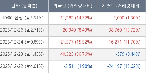 ※ 사모펀드 등 일부 기관의 순매매량은 표시되지 않음
