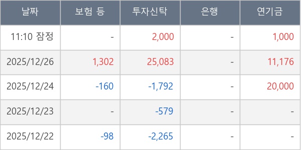 [표] 주요 기관별 순매매량 (단위 주)