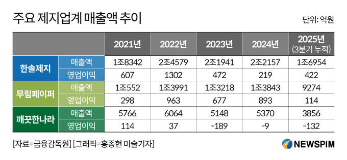 한 제지업계 관계자는 "최근 깨끗한나라가 사업 다각화를 추진 중이지만 여전히 화장지, 물티슈 등에서 많은 매출이 발생한다"며 "고환율 국면에서 원재료 수입 비용이 늘어난 데다, 이를 상쇄할 수 있는 가격 인상도 어려운 상황"이라고 말했다.