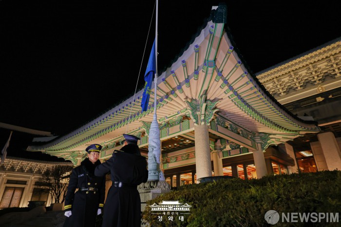 [서울=뉴스핌] 29일 자정 서울 종로구 청와대에 봉황기가 게양되고 있다. 이재명 대통령은 용산 대통령실에서 청와대로 집무실을 옮겨 업무를 계속한다. [사진=청와대] 2025.12.29 photo@newspim.com