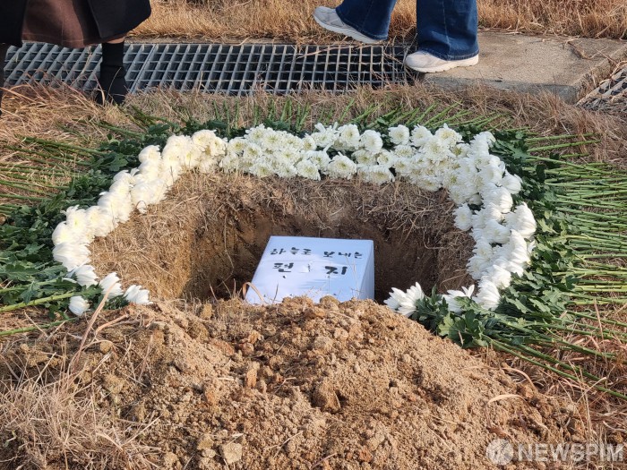 [무안=뉴스핌] 조은정 기자 = 전남 무안국제공항 활주로 끝 둔덕에서 제주항공 참사 유가족들이 희생자들을 추모하며 '하늘로 보내는 편지'를 태워 하늘로 올리고 있다. [사진=제주항공 여객기 참사 유가족 협의회] 2025.12.29 ej7648@newspim.com