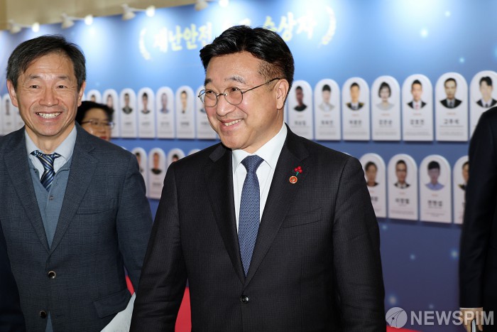 [서울=뉴스핌] 윤호중 행정안전부 장관이 29일 오전 세종컨벤션센터에서 국민 안전을 위해 헌신한 공직자와 안전실천의인 등과 함께 열린 '2025 대한민국 안전동행 한마음' 행사에 참석하고 재난안전유공 수상자 전시공간을 둘러보고 있다. [사진=행정안전부] 2025.12.29 photo@newspim.com