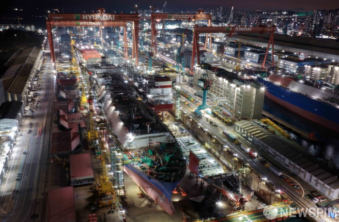 [서울=뉴스핌] 윤창빈 기자 = 어느덧 2025년의 해가 저물고 있습니다. 지난해 18일 울산 HD현대중공업 조선소의 밤은 어둠이 무색할 만큼 밝은 불빛으로 가득합니다. 붉은 말의 해인 2026년 병오년에는 한미 양국 조선산업 협력 프로젝트인 '마스가'(MASGA·미국 조선업을 다시 위대하게)가 본격화될 것으로 보입니다. 닻을 올린 마스가 프로젝트를 통해 '조선 강국'이라는 위상을 더욱 공고히 하고, 대한민국이 경제 대국으로 한 단계 더 도약하는 한 해가 되기를 기대해 봅니다. 2026.01.01 pangbin@newspim.com