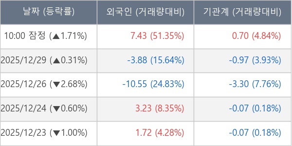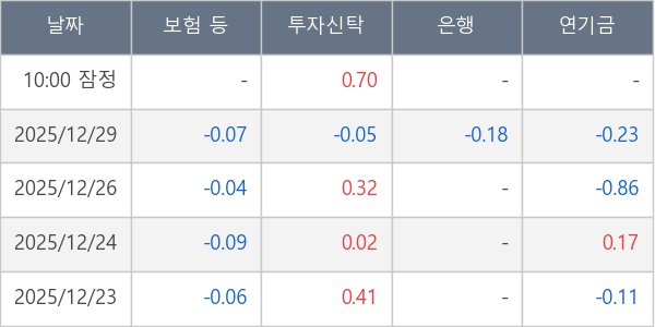 [표] 주요 기관별 순매매량 (단위 만주)