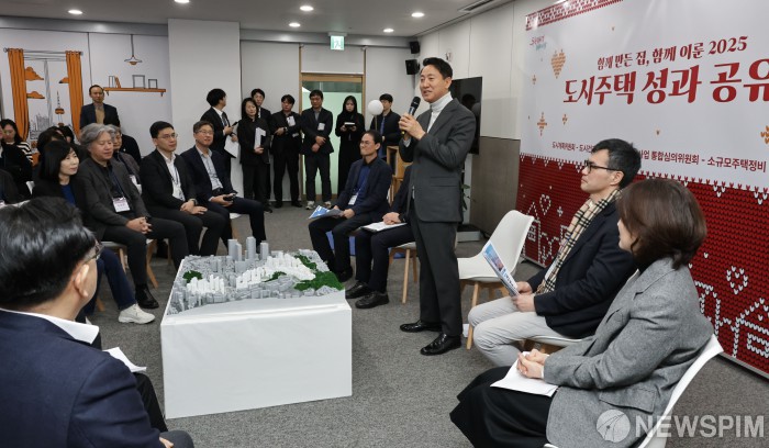[서울=뉴스핌] 양윤모 기자 = 오세훈 서울시장이 30일 서울시청에서 개최된 '2025 도시주택 성과 공유회'에 참석해 환영사를 하고 있다. 2025.12.30 yym58@newspim.com