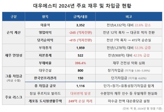 대우에스티의 감사보고서를 살펴보면 적자의 주원인은 '개포동 도시형생활주택' 현장에서 발생한 공사미수금이었다. 김 대표는 해당 현장의 미수금 248억원 전액을 대손충당금으로 설정하며 손실 처리했다.