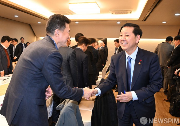 [서울=뉴스핌] 구윤철 부총리 겸 기획재정부 장관이 30일 서울 종로구 정부서울청사에서 열린 경제인문사회연구회 간담회에서 참석자들과 인사를 나누고 있다. [사진=기획재정부] 2025.12.30 photo@newspim.com