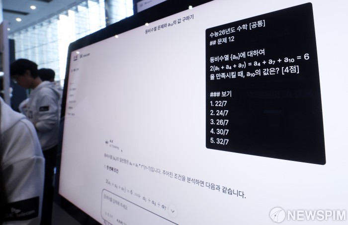 [서울=뉴스핌] 최지환 기자 = 30일 오후 서울 강남구 코엑스에서 열린 '독자 AI 파운데이션 모델' 프로젝트 1차 발표회 부스에서 SK텔레콤 관계자가 시연을 하고 있다. 2025.12.30 choipix16@newspim.com