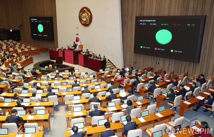 [서울=뉴스핌] 정일구 기자 = 30일 오후 서울 여의도 국회에서 열린 본회의에서 형법 일부개정법률안(대안)이 가결되고 있다. 2025.12.30 mironj19@newspim.com