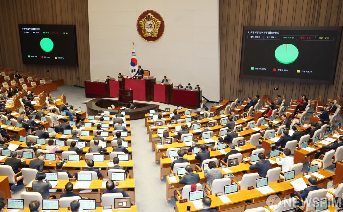 [서울=뉴스핌] 정일구 기자 = 30일 오후 서울 여의도 국회에서 열린 본회의에서 지방세법 일부개정법률안(대안)이 가결되고 있다. 2025.12.30 mironj19@newspim.com