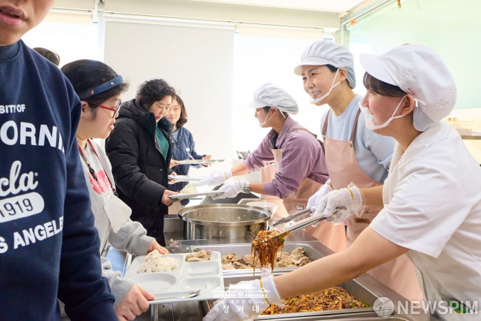 [서울=뉴스핌] 김혜경 여사가 30일 서울 종로장애인복지관을 찾아 배식 봉사를 하고 있다. [사진=청와대] 2025.12.30 photo@newspim.com
