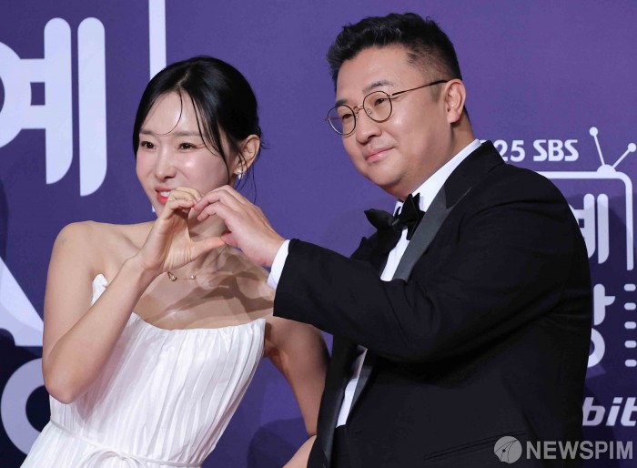 [서울=뉴스핌] 윤창빈 기자 = 예능 동상이몽2-너는 내 운명(이지혜, 문재완) 출연진이 30일 서울 마포구 SBS프리즘타워에서 열린 2025 SBS 연예대상 포토월에서 포즈를 취하고 있다. 2025.12.30 pangbin@newspim.com