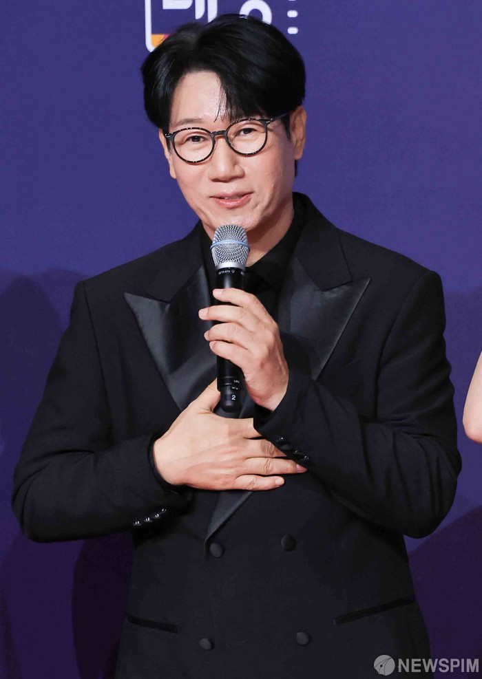 [서울=뉴스핌] 윤창빈 기자 = 지석진이 30일 서울 마포구 SBS프리즘타워에서 열린 2025 SBS 연예대상 포토월에서 사회자 질문에 답변하고 있다. 2025.12.30 pangbin@newspim.com