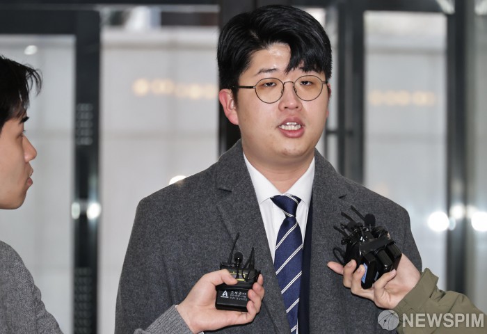[서울=뉴스핌] 양윤모 기자 = 31일 오전 '쿠팡 블랙리스트' 공익제보자 김준호씨가 서울 서초구 센트로빌딩의 쿠팡특검팀(안권섭 특별검사)에 참고인 조사를 위해 출석해 취재진의 질문에 답하고 있다. 김 씨는 2022년 11월부터 2023년 4월까지 쿠팡풀필먼트서비스(쿠팡CFS) 호법물류센터 HR채용팀에서 근무하며 'PNG 리스트'라고 불리는 '블랙리스트' 문건을 활용해 취업 지원자들을 배제하는 업무를 수행했었다. 쿠팡CFS는 2023년 5월 노동자들에게 불리하게 취업규칙을 변경해 퇴직금을 고의로 지급하지 않았다는 의혹을 받는다. 2025.12.31 yym58@newspim.com