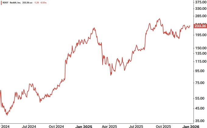 2025년 레딧의 주가(연말 종가 233.36달러)는 43% 뛰었다. S&P500 상승률 17%를 넘어서 제법 괜찮은 수익률 같지만 그 과정은 가히 '천당'과 '지옥'의 반복이었다. 혹자는 작년까지 상장(상장가 34달러) 이후 9개월 동안 무려 5배가량 뛴 데 대한 일종의 숙취라고도 할 수 있다.