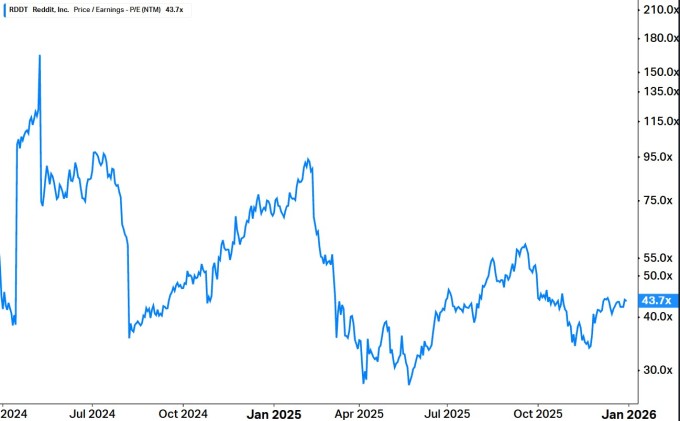 투자 관점에서 레딧에 약점으로 거론되는 게 밸류에이션이다. 코이핀에 따르면 레딧의 주가수익배율(PER, 포워드<향후 12개월분 애널리스트 주당순이익 추정치 컨센서스)은 43.7배다. S&P500의 22.5배를 크게 뛰어넘는다. 메타의 22.6배와 스냅의 18.6배도 상회한다.
