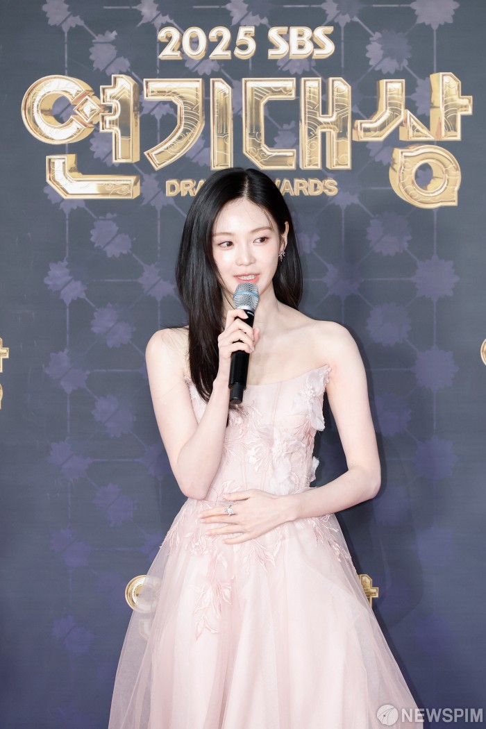 [서울=뉴스핌] 류기찬 기자 = 배우 우다미가 31일 오후 서울 마포구 SBS프리즘타워에서 열린 ‘2025 SBS 연기대상 시상식 포토월’에서 인사말을 하고 있다. 2025.12.31 ryuchan0925@newspim.com
