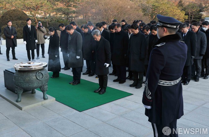 [서울=뉴스핌] 윤창빈 기자 = 우원식 국회의장이 1일 오전 서울 동작구 국립서울현충원에서 2026 신년 참배를 하고 있다. 2026.01.01 pangbin@newspim.com