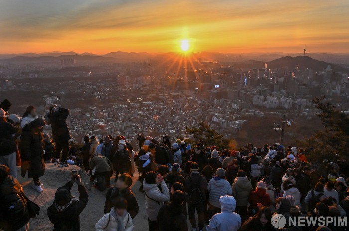 [서울=뉴스핌] 양윤모 기자 = 2026년 ‘붉은 말의 해’ 병오년(丙午年) 첫날인 1일 서울 종로구 인왕산 정상에서 시민들이 일출을 지켜보고 있다. 2026.01.01 yym58@newspim.com