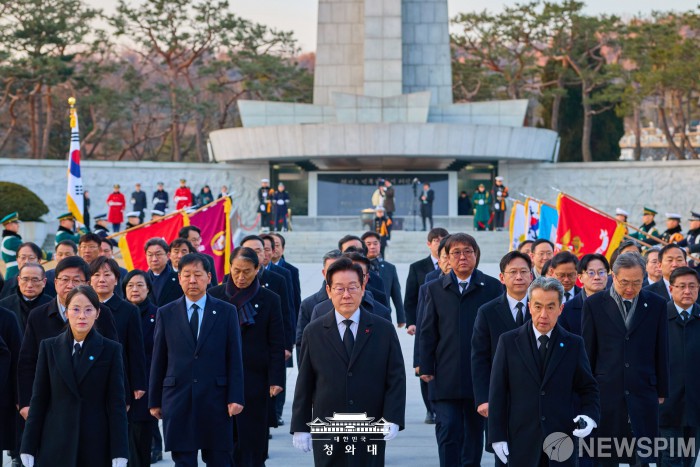 [서울=뉴스핌] 이재명 대통령이 지난 1일 서울 동작구 국립서울현충원에서 현충탑 참배를 마치고 이동하고 있다. [사진=청와대] 2026.01.02 photo@newspim.com