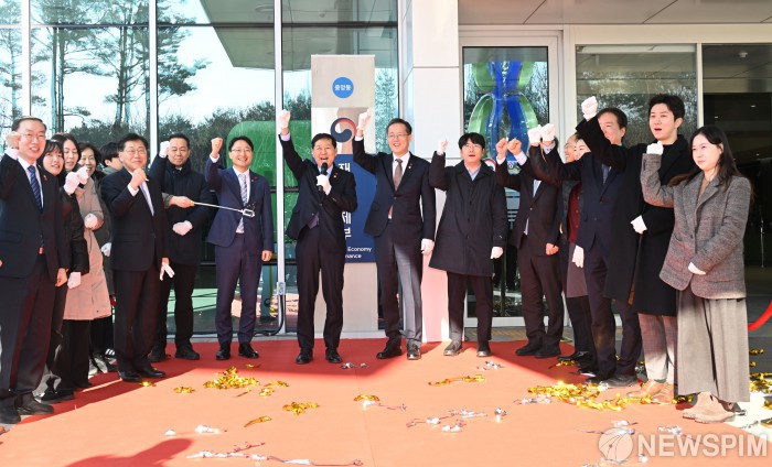 [서울=뉴스핌] 구윤철 부총리 겸 재정경제부 장관이 2일 정부세종청사에서 열린 재정경제부 출범식에서 현판식을 마치고 기념촬영을 하고 있다. [사진=재정경제부] 2026.01.02 photo@newspim.com