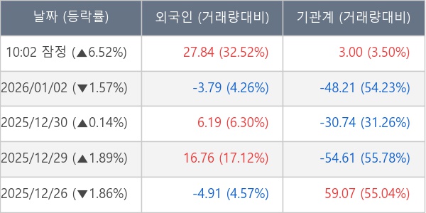 [장중수급포착] 현대건설, 외국인/기관 동시 순매수… 주가 +6.52%