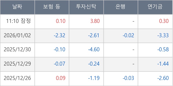 [표] 주요 기관별 순매매량 (단위 만주)
