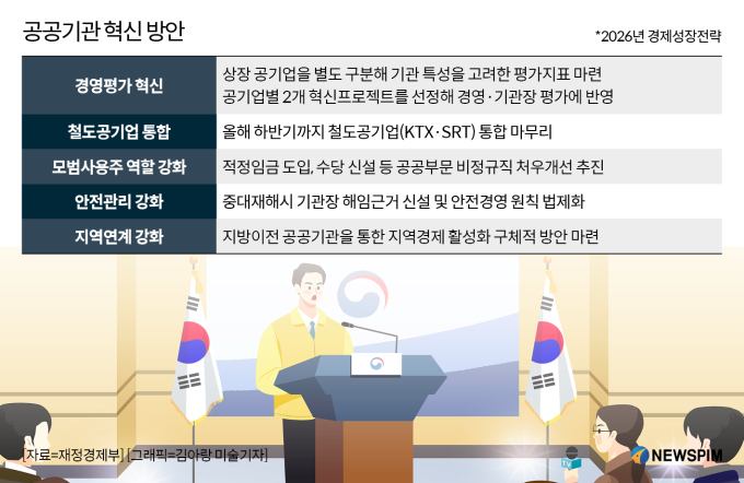 [세종=뉴스핌] 이정아 기자 = 정부가 공공기관의 생산성과 공공성 제고를 위해 기능개혁과 경영평가 혁신, 안전관리 책임 강화를 묶어 전면 개편에 나선다.