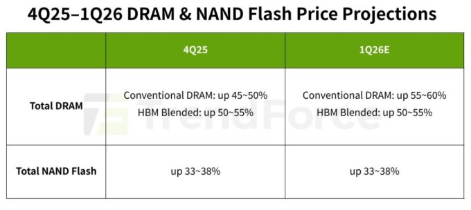트렌드포스는 단기적으로 메모리 공급이 수요를 밑도는 상황이 지속되면서 가격 상승 흐름이 당분간 이어질 가능성이 크다고 분석했다.