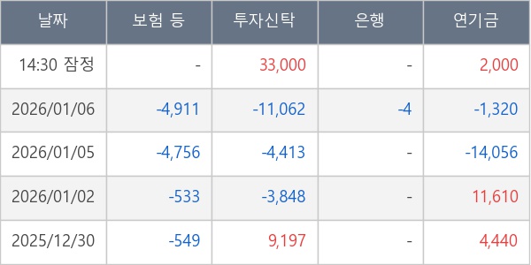 ※ 사모펀드 등 일부 기관의 순매매량은 표시되지 않음