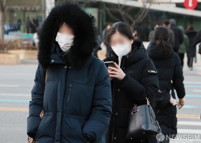 [서울=뉴스핌] 이길동 기자=연이틀 전국 대부분 지역이 영하권 추위를 보인 9일 오전, 서울 종로구 광화문네거리에서 두꺼운 외투를 입은 시민들이 발걸음을 옮기고 있다. 2026. 01. 09. gdlee@newspim.com