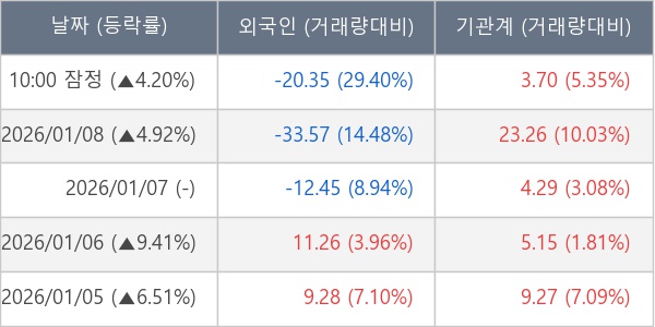 [표] 주요 기관별 순매매량 (단위 만주)