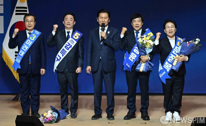 정 대표는 친명 친청 대결 프레임을 의식한 듯 "오늘만큼은 네 편 내 편 따지지 말고 박수를 보내달라"며 "최고위원회에 입성하는 세 분, 새롭게 뽑힐 원내대표와 함께 정청래 지도부 완전체를 구성해 지금까지 그래왔듯이 원팀·원보이스로 이재명 정부를 든든하게 뒷받침하겠다는 약속을 당원 동지들께 다시 한 번 드린다"고 했다.
