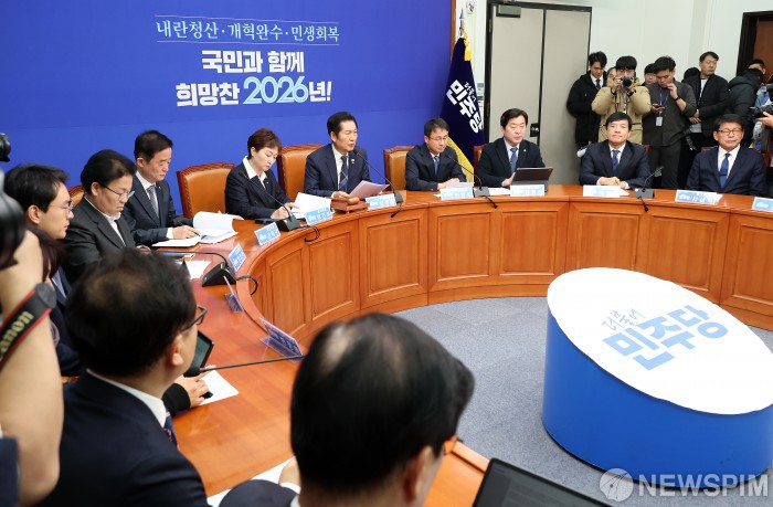 [서울=뉴스핌] 정일구 기자 = 정청래 더불어민주당 대표가 12일 오전 서울 여의도 국회에서 열린 최고위원회의에서 모두발언을 하고 있다. 2026.01.12 mironj19@newspim.com