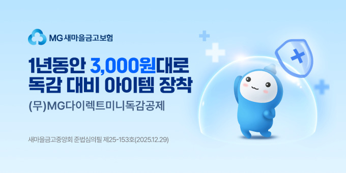 [서울=뉴스핌] 이윤애 기자 = 새마을금고중앙회는 합리적인 가격과 간편한 가입 절차를 갖춘 '무배당 MG 다이렉트 미니 독감공제'를 출시했다고 12일 밝혔다. [사진=새마을금고중앙회] 2026.01.12 yunyun@newspim.com