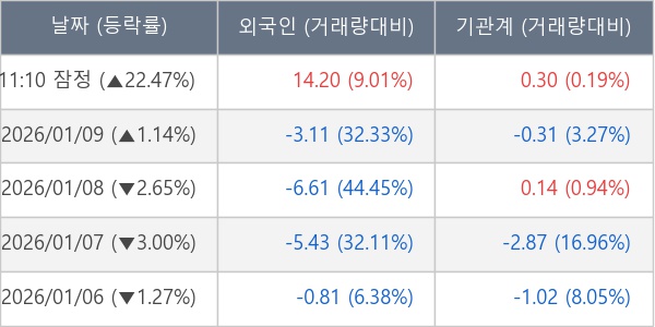 [장중수급포착] 이녹스첨단소재, 외국인/기관 동시 순매수… 주가 +22.47%